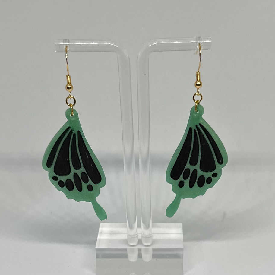 Lightweight resin material in an mint green and black colors. Earring posts are hypoallergenic.